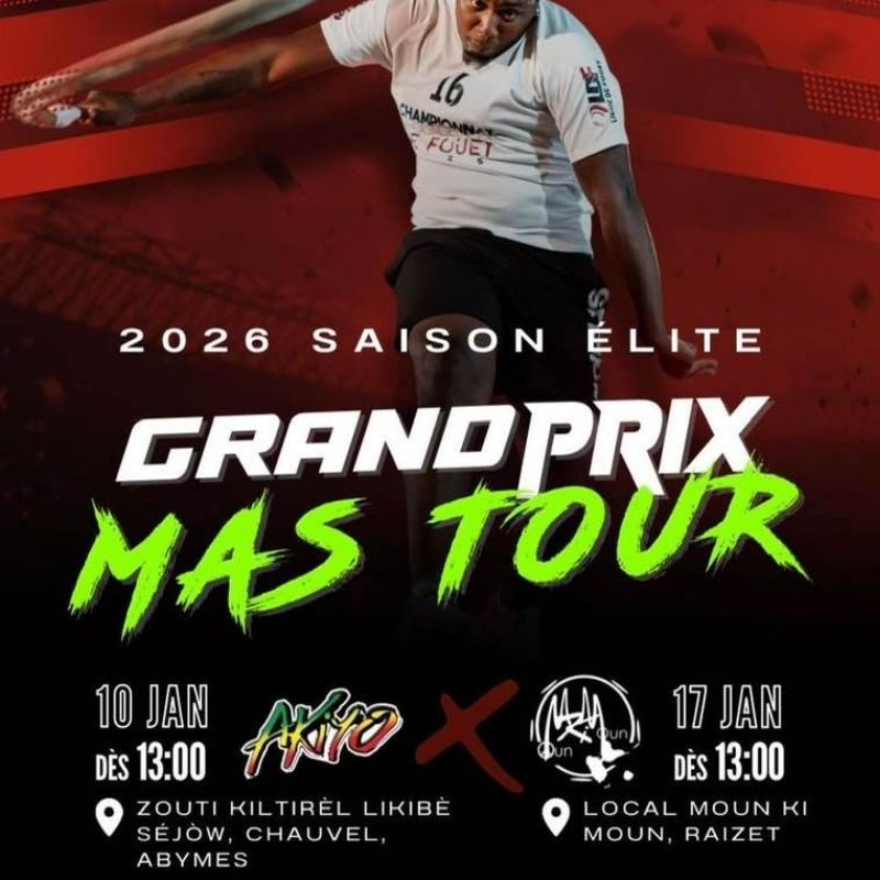 Le Grand Prix Mas Tour – Saison Élite 2026 est officiellement lancé.Un tour rythmé par la performance, la maîtrise et l’exigence du Mas. 📍 Samedi 10 Janvier – dès 13hChez AKIYOZouti Kiltirèl Likibè Séjòw – Chauvel, AbymesL 📍 Samedi 17 Janvier – dès 13hChez Moun Ki MounLocal – Raizet Qui peut participer? Tout fouettard âgé […]
