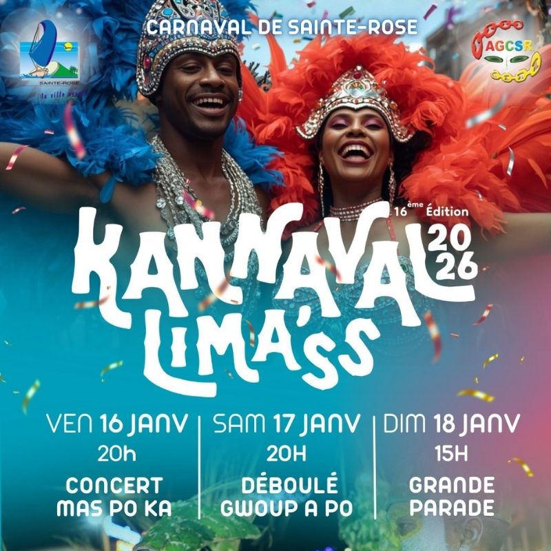 🎭🔥 Kannaval Lima’ss 2026 s’installe à Sainte-Rose pour trois jours de vibrations carnavalesques, entre traditions, énergie collective et grand spectacle. 🎶 Vendredi 16 janvier à 20h, le carnaval s’ouvre en musique avec le concert Mas Po Ka, un premier rendez-vous pour entrer pleinement dans l’ambiance.🥁 Samedi 17 janvier à 20h, place au déboulé Gwoup a […]